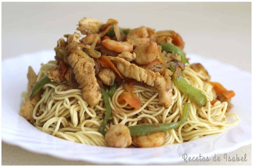 En casa nos encanta la comida asiática, así que cuando tenemos ganas de comer este tipo de comidas preparo estos noodles con gambas y pollo. A mi me resulta muy socorrido porque se hacen en un momento y están buenísimos.