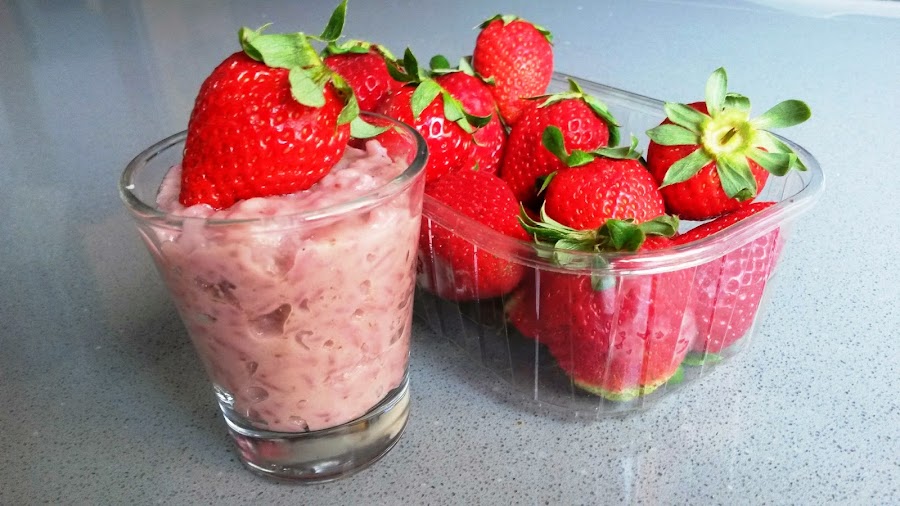 Vasitos de risotto con fresas