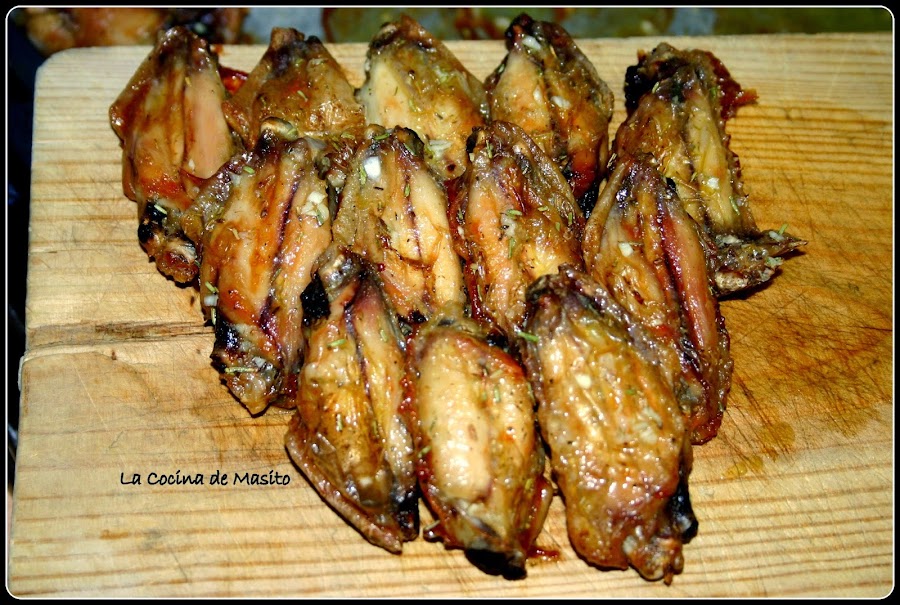 Otra estupenda versión de unas alitas, esta vez al horno, es la que prepara Masito en su blog La Cocina de Masito: unas alitas de pollo con ajo, especias y limón.