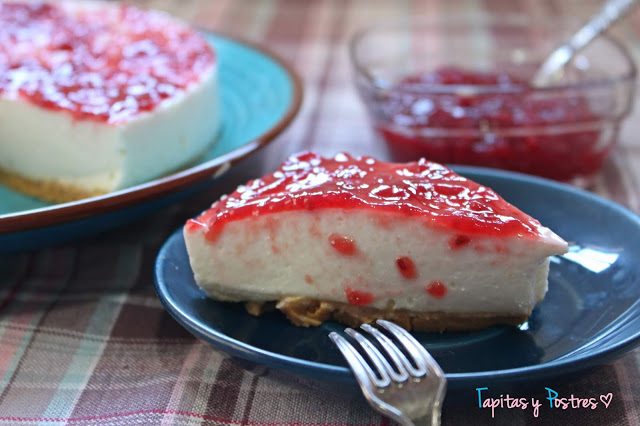 Y acabamos con una super tarta de queso de mi blog Tapitas y Postres. Para acabar una comida con buen sabor de boca y pocas calorías.