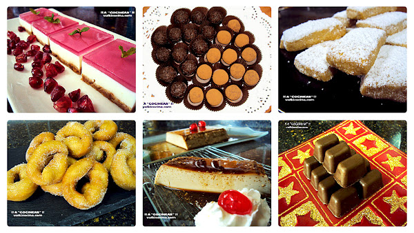 Con esta recopilación, terminamos con los especiales de Navidad, donde hemos visto en posts anteriores 18 recetas de aperitivos entrantes y salsas ( ver aquí ) y otras 18 recetas con guarniciones, pescados y carnes ( ver aquí ).