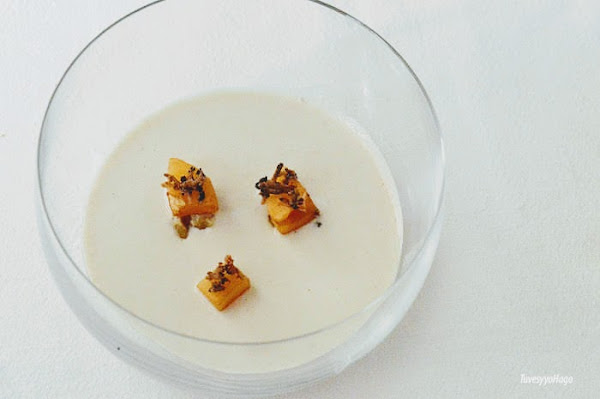 PRIMER PLATO - AJOBLANCO DE NUECES, NÍSPEROS Y TRUFA NEGRA