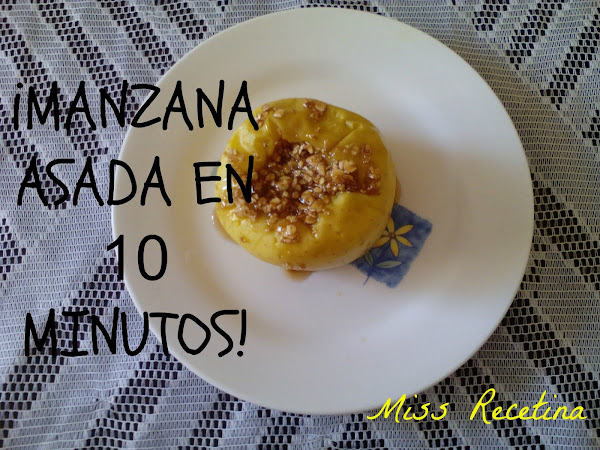 Y llevamos al microondas por 5 minutos, tenemos que estar atentos y abrir el microondas de vez en cuando para evitar que salte ya que dentro de la manzana se hace una especie de caramelo así que tenedlo en cuenta, es verdad que aun abriendo el micro sale un poco del caramelo pero no es mucho, y listo tenemos una deliciosa manzana asada sana y solo tardamos 5 minutos en prepararla más los 5 minutos del micro, vamos que para salir de un apuro nos viene genial, un mando un beso GIGANTE!!
