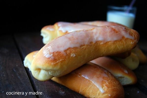 Pasadas estas horas, amasamos de nuevo y estiraremos formaremos porciones es forma de cigarrillos. Dejaremos fermentar otra hora mas y horneamos. Finalizamos poniéndoles un baño de glasa por encima...VER RECETA COMPLETA