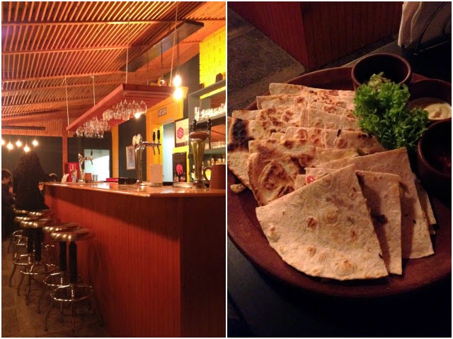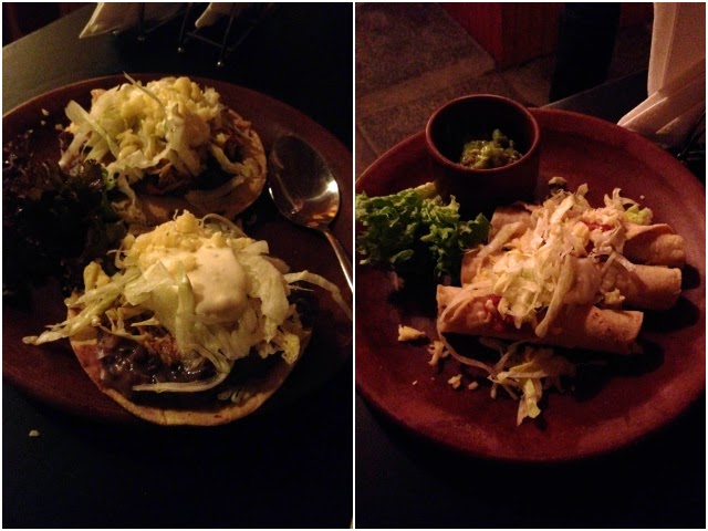 En cuanto a la comida probamos y compartimos tres platos, el mix de quesadillas (de jamón-queso, champiñón-queso y pollo-queso) realmente deliciosas y perfectas para compartir, la orden de tostadas (tortillas fritas con base de frijoles refritos y crema ácida con guisado a elección), un rico plato para una persona, ya que son difíciles de compartir. Y las flautas de pollo (tortillas de maíz rellenas y fritas) crujientes y sabrosas! Los precios de los platos (para compartir, tacos, tortas y platos fuertes) van entre los $3.000 y $6.500.
