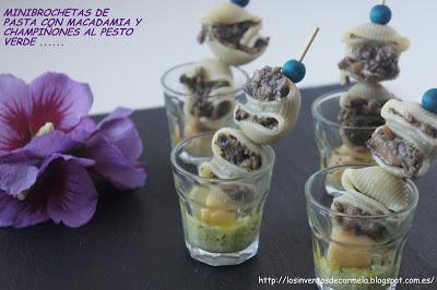 MINIBROCHETA CARMELA DE PASTA DE CHAAMPIÑONES Y MACADAMIA AL PESTO VERDE