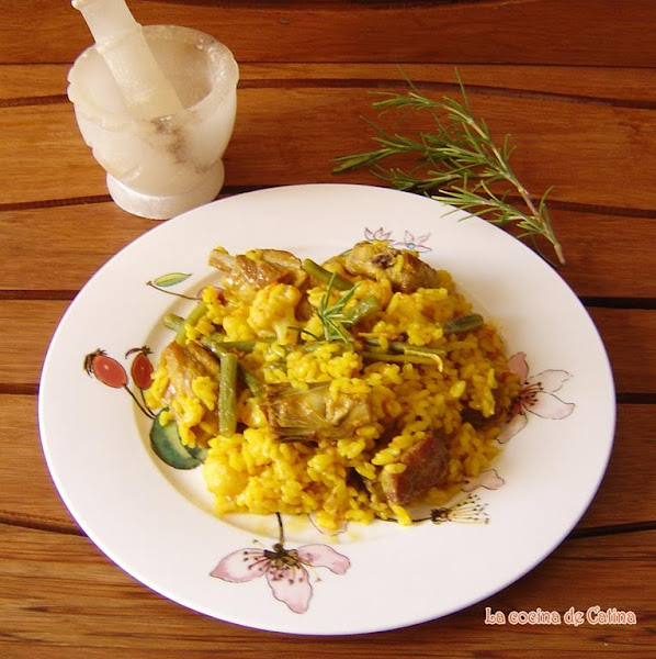 Catina, desde el blog La cocina de Catina, aporta un rico arroz con verduras y costillejas, para chuparse los dedos: