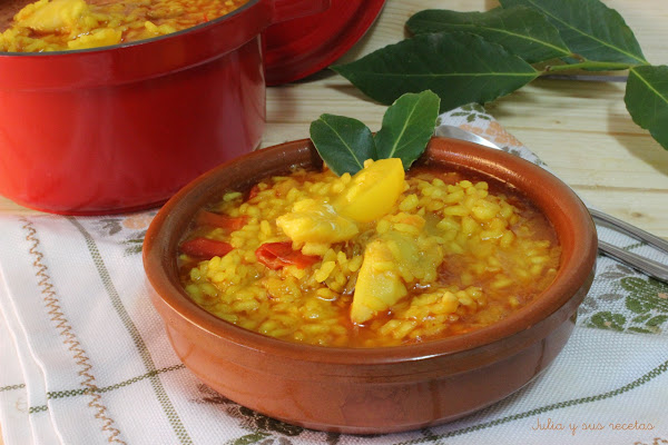 El arroz con patatas y bacalao es típico de tierras manchegas en época de cuaresma. Para que sepamos como prepararlo, Julia nos deja su versión en su blog, Julia y sus recetas. Pinta así de rico: