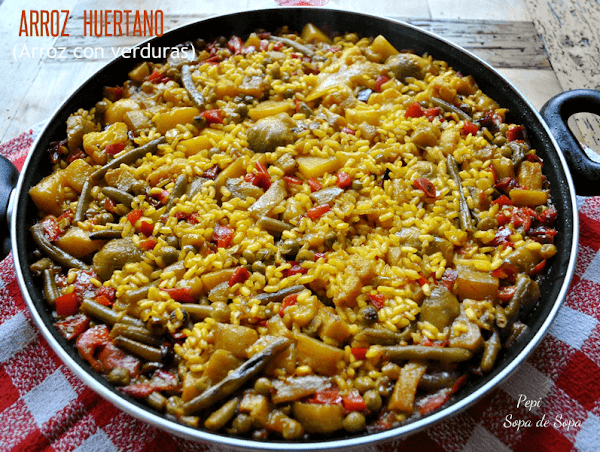 Desde la huerta de Murcia, con su inmensa variedad de hortalizas, nos llega este arroz huertano que ha preparado Pepi, de Sopa de Sopa. Arroz y verduritas, se me ocurren pocas combinaciones más saludables y más ricas.