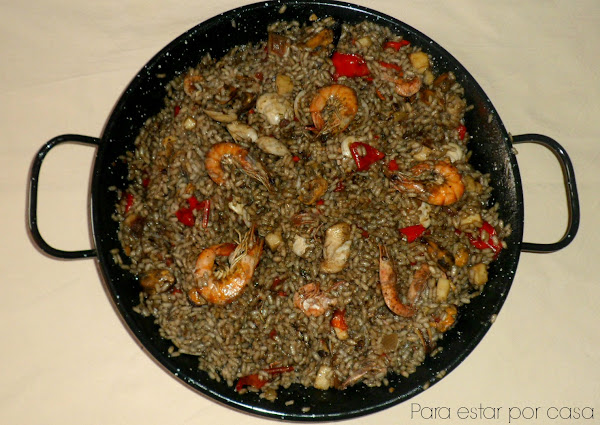 Chus, de Para estar por casa, se ha decidido a preparar en su ídem un arroz negro que siempre había comido fuera. Una vez lanzada, con este resultado tan perfecto, piensa repetirlo más veces, ¡no me extraña! Para la próxima, me declaro autoinvitada.