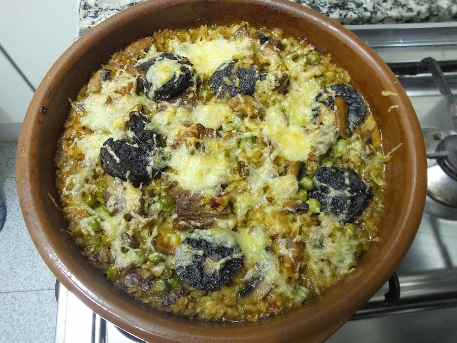 Luz, del blog Cocinando un abril encantado, ha preparado un arroz al horno que ella nos asegura que está bien rico: con sus garbanzos, su morcilla, y su costilla de cerdo.