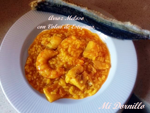 Nuestra anfitriona de este mes, culpable de tantos arroces ricos, se ha decantado por una receta muy típica de su tierra: arroz meloso con volao. En sus propias palabras: "un pescado que se captura y se seca en Estepona de julio a septiembre; se come de muchas formas, ya que es como un salazón, y esta rico como sea". En su blog, además de la receta, podéis encontrar más información sobre este pescado.