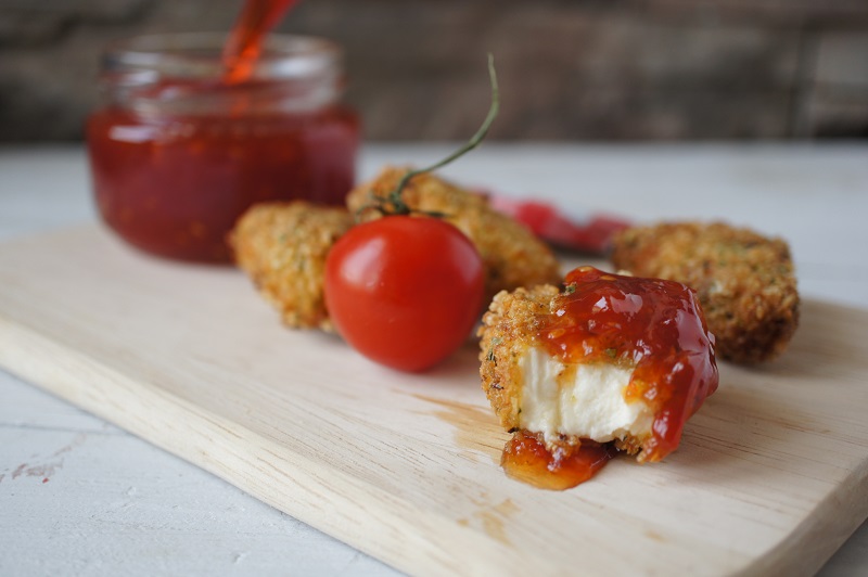 Quesitos fritos con mermelada casera de tomates cereza es la deliciosa propuesta de Carmela del blog Los Inventos de Carmela. Un éxito asegurado.:
