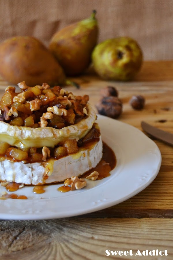 Una opción para por ejemplo una cena especial es este Queso camembert con pera caramelizada y nueces hecho al horno para que funda por dentro. Para perder el sentido! Nos lo envía Laura de SweetAddict.