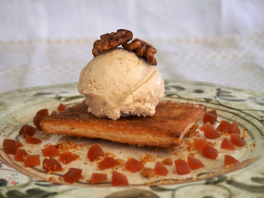 Este original Helado de Idiazabal con nueces y membrillo nos lo envía Pilar del blog Per sucar-hi pa y es una reinterpretación de uno de los postres más populares de la península, en este caso de la zona del País Vasco y Navarra donde se produce el queso Idiazabal.