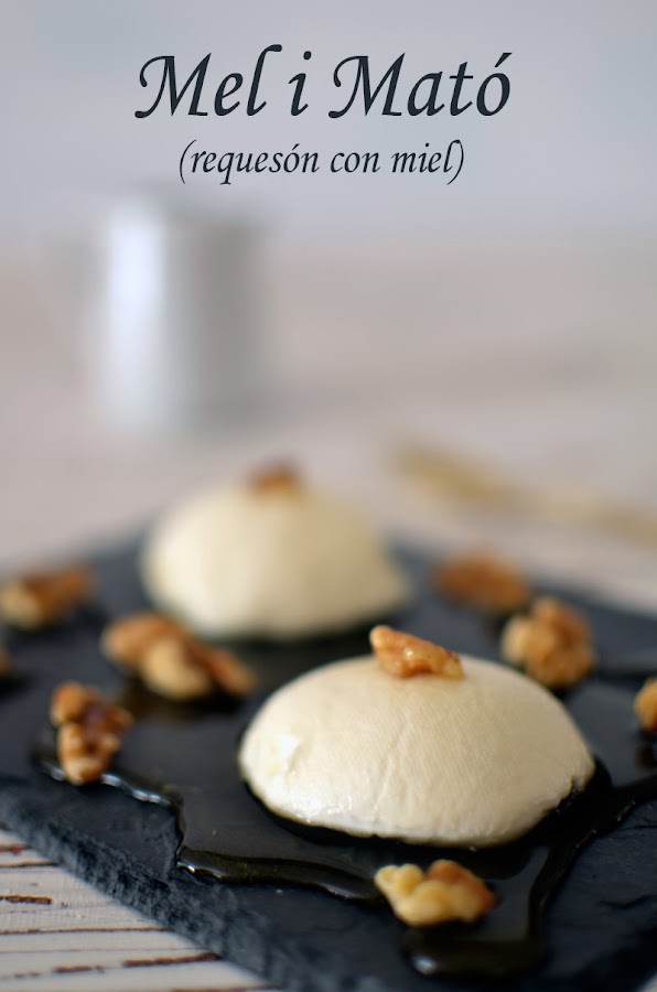 Cris, desde el blog Quédate a comer, nos envía este delicioso postre muy típico de Catalunya como es el "mel i matò" o lo que es lo mismo, requesón con miel en el que ha preparado su propio requesón sin lactosa. Qué bueno!