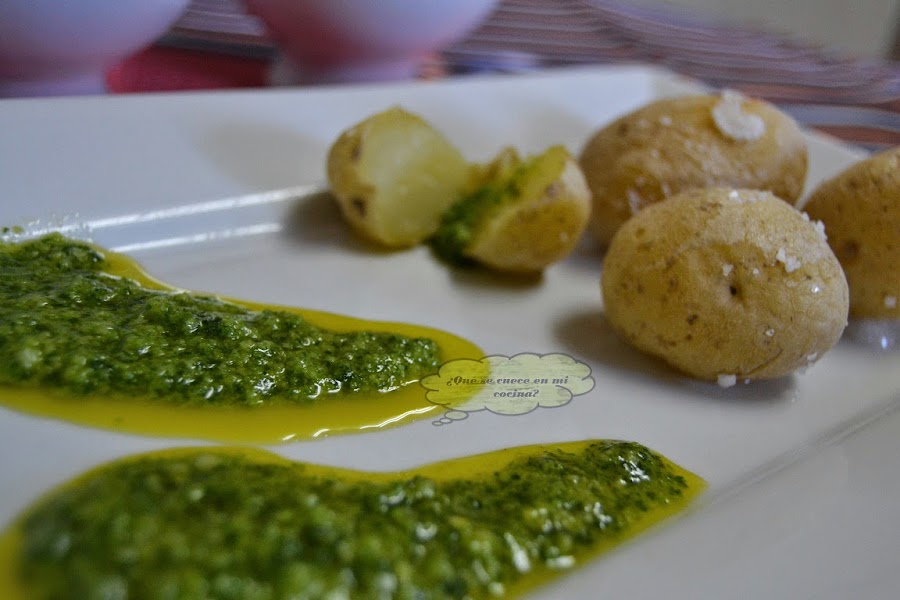 Toñí de ¿Qué se cuece en mi cocina? nos propone estas deliciosas y canarias patatas: papas arrugás con mojo verde que tienen una pinta maravillosa: