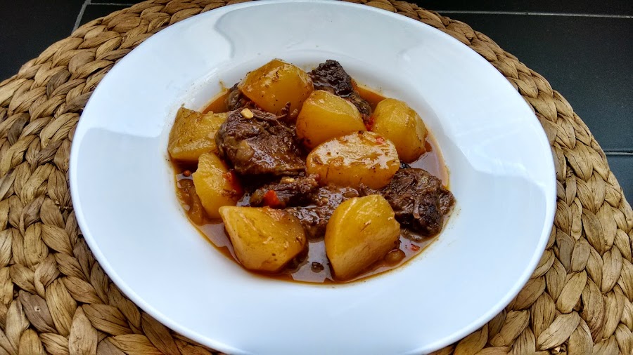 La receta que Lucia, De Pucheros y Otros, nos envía son estas patatas guisadas con carne y vinagre y qué le hace su madre desde pequeña.