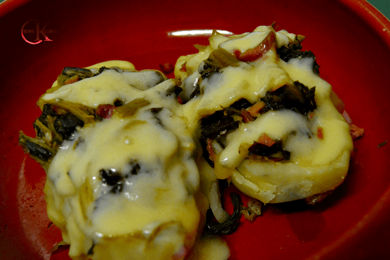 Esta deliciosa propuesta de patatas rellenas de lacón con grelos y queso San Simón Da Costa, es la recibida del blog Cocina y kuchnia:
