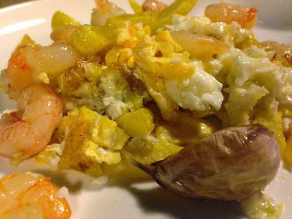Patricia, del blog El Trasgu de las galletas, nos propone unos Huevos estrellados con gambas y ajo confitado. No son los de Casa Lucio, pero asegura que es una idea deliciosa para cualquier cena.