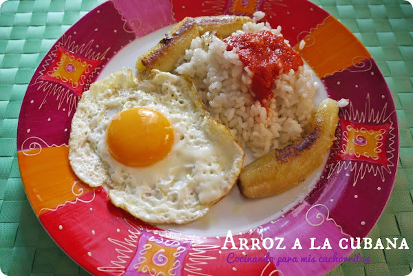 Verónica, del blog Cocinando para mis cachorritos, nos deja una estupenda receta de Arroz a la cubana. Una receta que han comido en casa desde que eran pequeñas y que ahora los cachorritos se comen como si fuese un manjar.