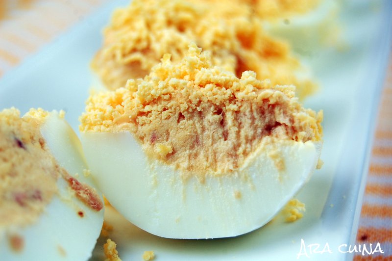 Sussi, del blog Ara cuina, ha preparado unos huevos rellenos de masa de atún que preparaban tanto su madre como su abuela, especialmente, en verano. Si los acompañamos de una ensalada, quedan de maravilla.