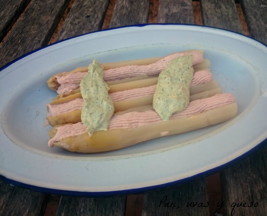 Desde el blog Pan, uvas y queso, nos envían unos deliciosos Espárragos rellenos de crema de salmón y, nos cuentan que "Como mala comedora durante toda mi infancia, recuerdo perfectamente cuando probé por primera vez los espárragos. Tendría 12 años y había ido de viaje a Madrid con mi padre. Me llevó a un (cutre) bar de la Plaza Mayor y me dijo que ahí ponían los mejores espárragos del mundo...debía ser cierto, porque desde entonces soy toda una enamorada de esta verdura"