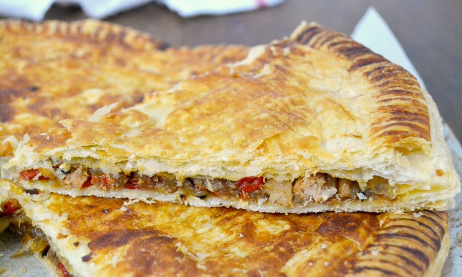 A Juanan, del blog Cuuking, se le ha ocurrido una idea rápida, sencilla y rica, para aprovechar la latas: empanada con atún y piquillos. ¡Mirad qué pinta más rica!