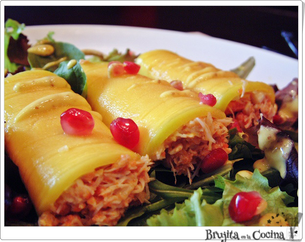1. Comenzamos con una receta un poquitin elaborada por lo de limpiar el buey y hacer los canelones con un mango maduro pero con un resultado espectacular tanto en sabor como presentación, asi que toma nota de estos Canelones de mango con buey de mar