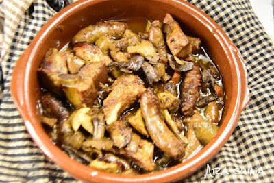 Sussi nos propone un platillo de cerdo con setas típico de la cocina catalana, nos cuenta que es un plato de aprovechamiento, la receta completa en el blog Aracuina.