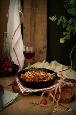 Patricia, del blog Pattys Cake ha preparado unas migas con chorizo. Y nos cuenta que en Navidad, cuando se reúne toda la familia, siempre hacen migas. "Ya las hacía mi abuelo y me acuerdo perfectamente de tomarlas en su salón. Todos decían "cuchará y paso atrás". Así es como se toman las migas. Nada de platos. Yo he hecho unas parecidas".