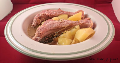 Chus desde el blog Para estar por casa, nos envía un costillar de cerdo ibérico al horno, lo ha preparado como lo haria su madre o su abuela, adobando la carne con ingredientes de siempre.