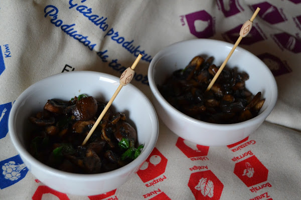 Iria, de Delirando en la cocina se ha ido también de tapas, con una muy ligerita, sana y rica: champiñones al ajillo.
