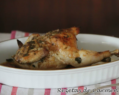 Carmen, de Rezetas de Carmen propone Picantones al horno. Nos cuenta que estos pollos son típicos de la zona de Valencia y son muy cómodos de hacer al ser más pequeños.