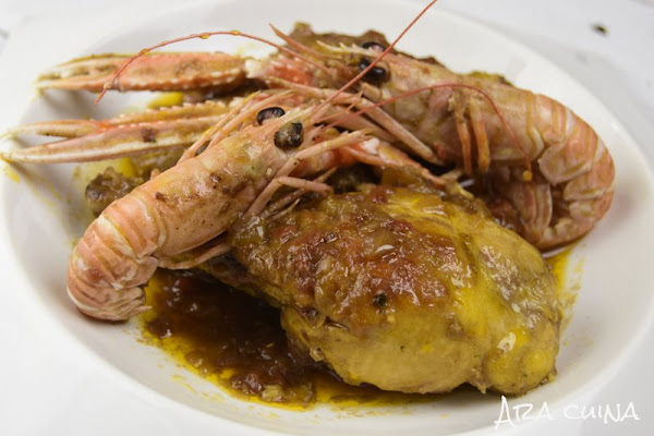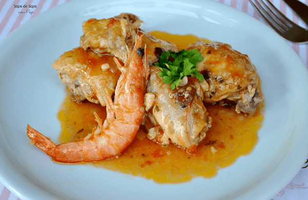 Pepi de Sopa de Sopa nos manda otra receta con pollo, en este caso, juntando mar y tierra. Este Pollo con gambas es típico en concreto de la Costa Brava y la receta original lleva cigalas. ¿A qué apetece probar esta mezcla tan original?