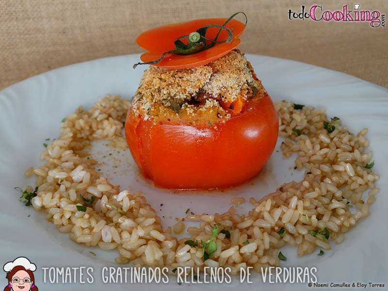 Noemi, de TodoCooking, se une alequipo tomatero, con unos jugositos y deliciosos tomates gratinados rellenos de verduritas del tiempo con jamoncito serrano.