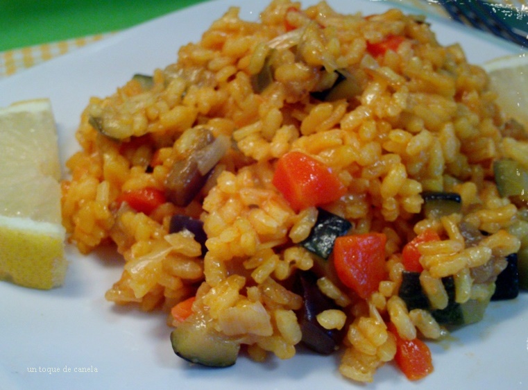 Esta estupenda Paella de verduras la manda Rosa de Un toque de canela. Ha elegido esta receta porque en su casa les encanta el arroz y de verduras porque así le hace un guiño a los vegetarianos que cada vez son más numerosos.