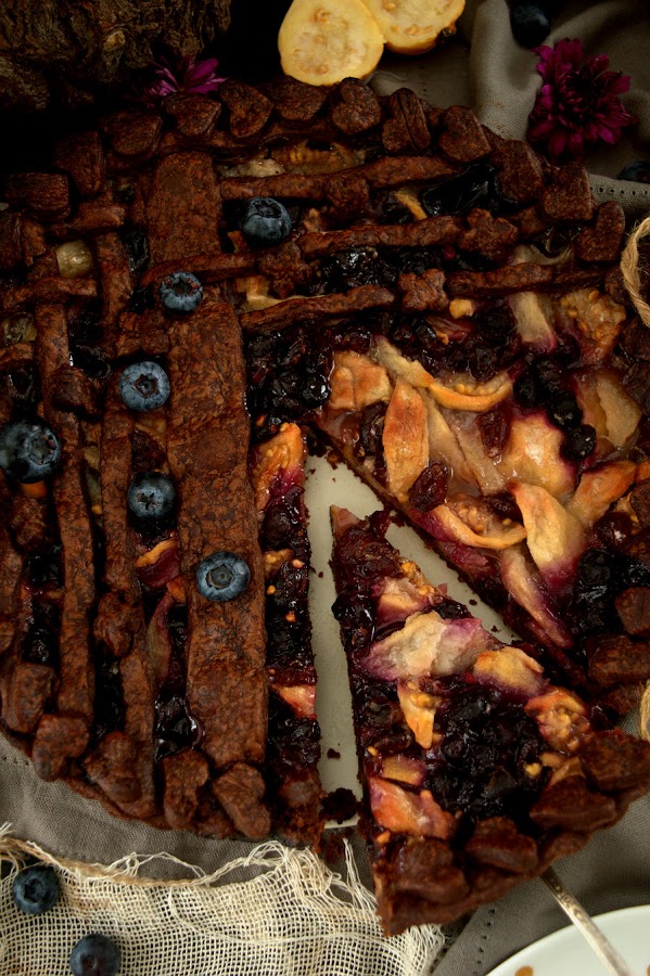 Nuestra REINA MADRE +Patricia Blanco Budia ha preparado un PIE DE GUAYABA Y ARÁNDANOS CON MASA DE CHOCOLATE . Ella ya había hecho con anterioridad esta receta por eso la ha tuneado un poco y ha preparado la masa de la tarta con chocolate en lugar de utilizar la receta tradicional. Dice que no está muy contenta con su masa porque cree que le quedó demasiado blanda, pero yo la veo impresionante. También ha sustituido las peras por guayabas: una fruta de lo más exótico ... pero nos da un consejo: quitar las pepitas de la guayaba antes de ponerla a macerar.