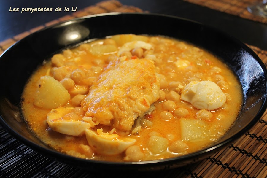 Lidia, desde el blog Mis platos favoritos, nos envía un potaje de garbanzos y bacalao, un plato tradicional de la cuaresma común en toda España.