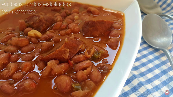 Amalia, desde Cuadernos de cocina, nos propone alubias pintas estofadas con chorizo, un plato que por lo visto a sus chicos ¡les encanta!
