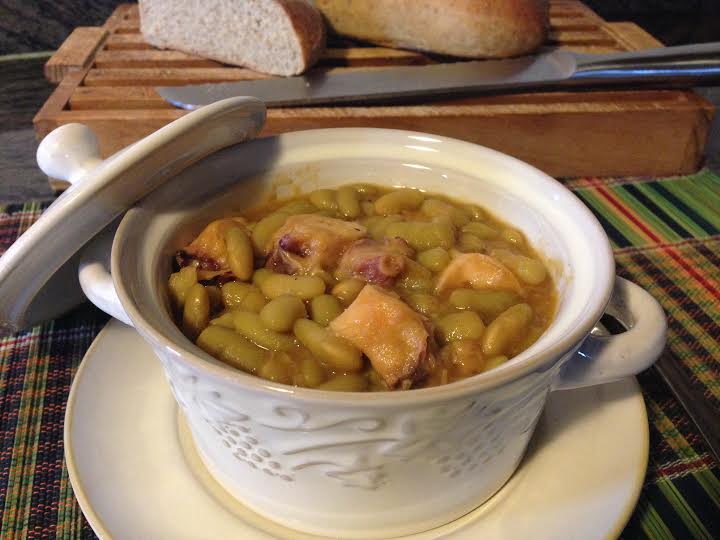 Isa nos prepara unas judías blancas con pulpo, en honor un poco a la anfitriona por ser gallega. La receta en su blog Cocina con Reina.