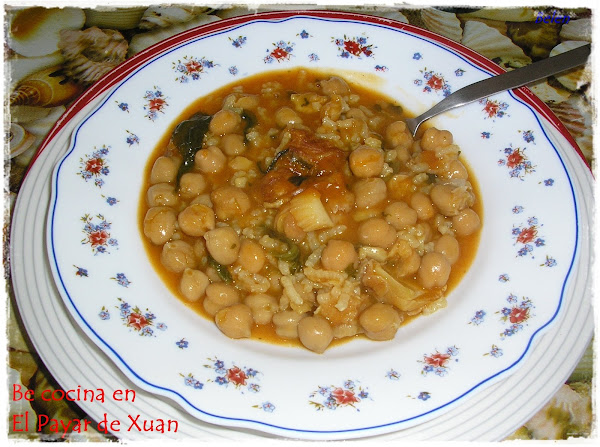 Mª José, de Tapitas y postres, nos deja con estos garbanzos con langostinos y chorizo, un plato típico de las ventas de Cádiz también llamado potaje marinero.