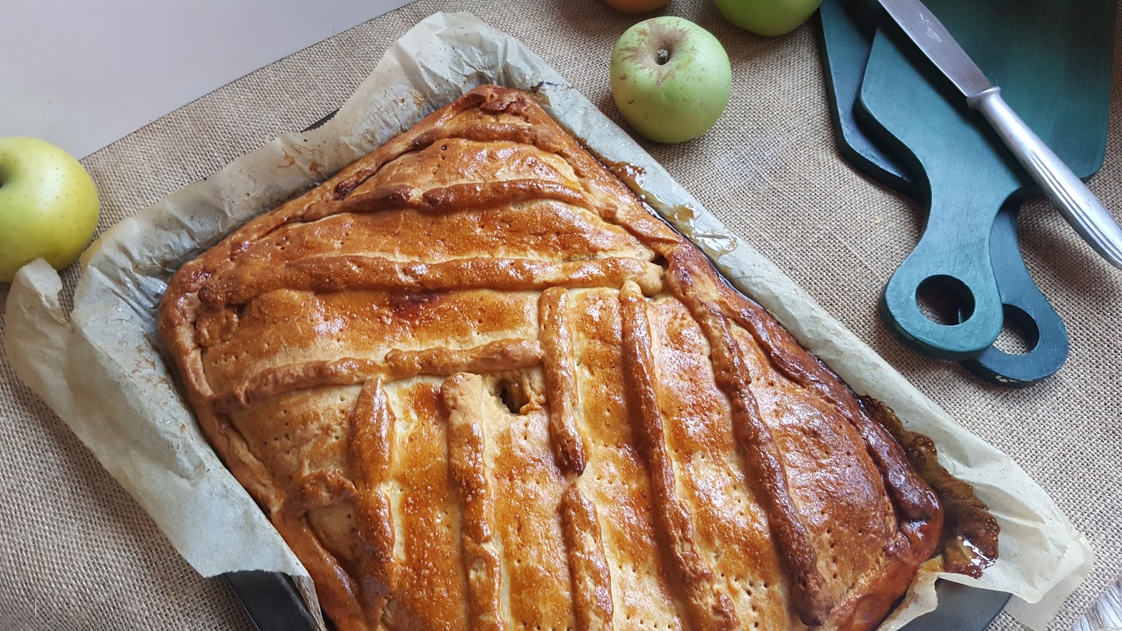 Amalia de Cuadernos de cocina nos deja una Empanada gallega de manzana y nos cuenta que en su casa cualquier plato que haya en la mesa con este ingrediente desaparece como por arte de magia. Y la repostería con manzana es la favorita del papá, así que era apuesta segura la receta de este mes.