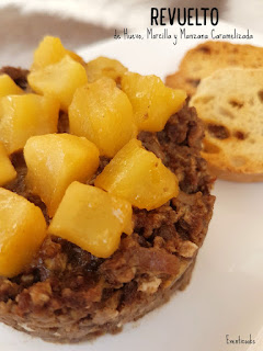 Desde Eventicooks nos traen una receta que combina sabores y texturas diferentes en un mismo plato. ¿Qué pasaría si en una Receta fusionamos manzana, morcilla y huevo? Pues el resultado es este Revuelto de huevo, morcilla y manzana caramelizada de quitar el sentido.