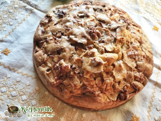Estela, de La Cocina de Estela nos propone una combinación clásica que siempre funciona. Bizcocho con manzana y nueces a la canela.