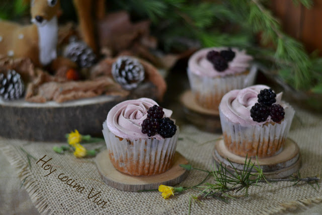 Una nueva entrada de cupcakes que me quedo. Algún día tendría que ponerme a hacerlos porque me dan un poco de miedo. Me voy quedando los cupcakes que me llaman la atención y entre ellos están estos, que me han gustado mucho por incorporar las moras. Me gustan. La receta la ha traido el blog de Hoy cocina Vivi, que nos ha enseñado esta maravilla.