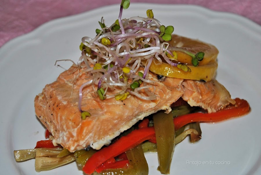 Maite, del blog Antojo en tu cocina, ha preparado Salmón con verduras en papillote.