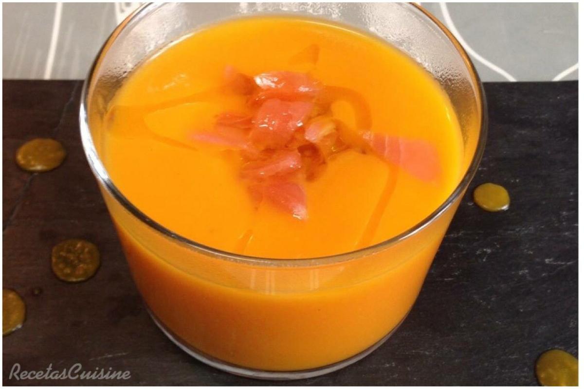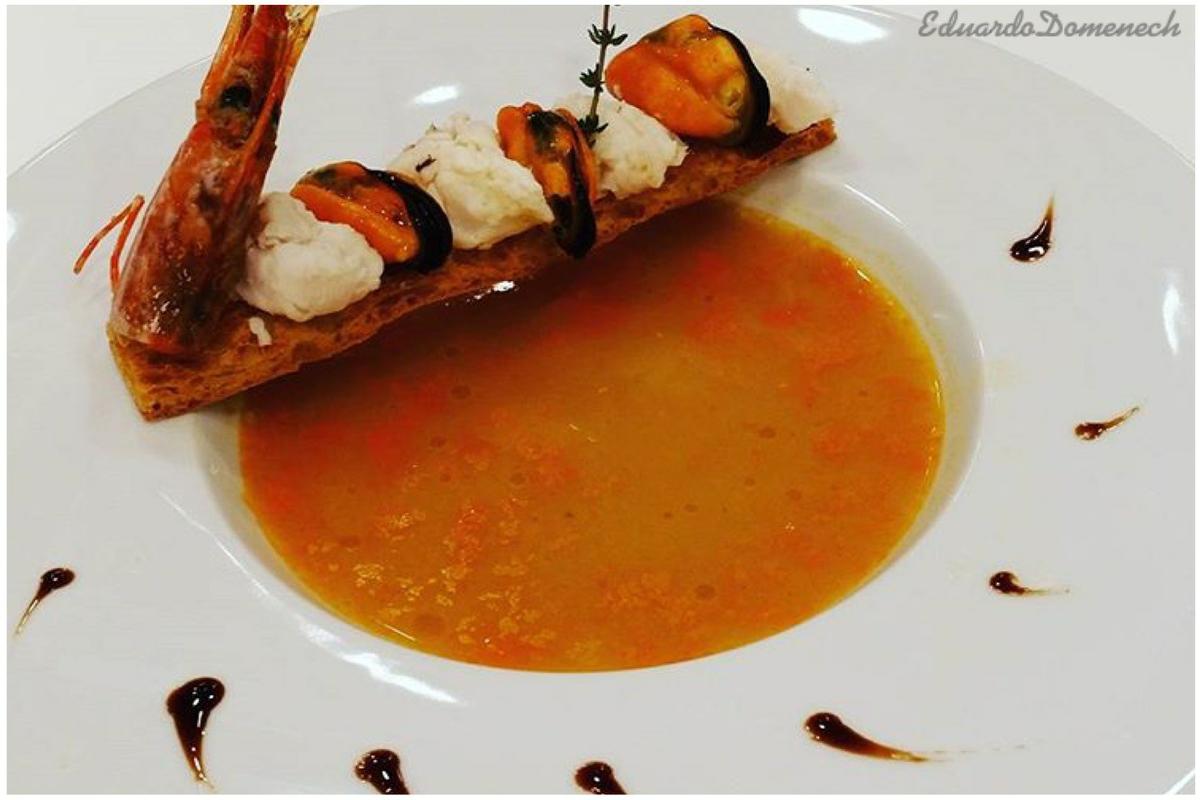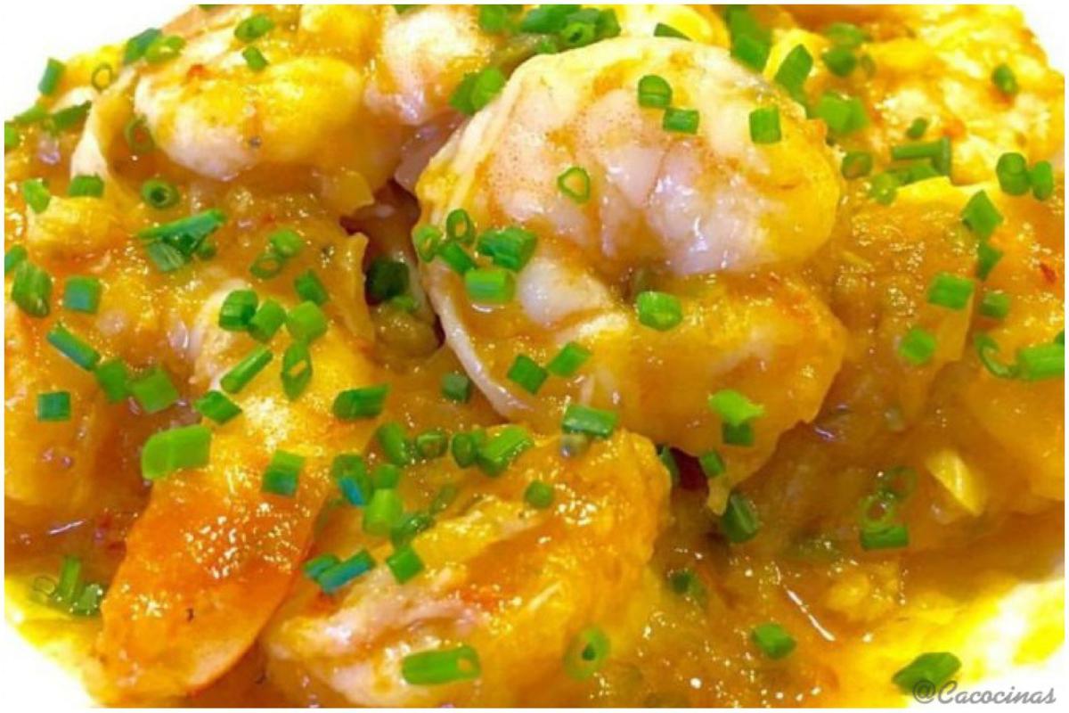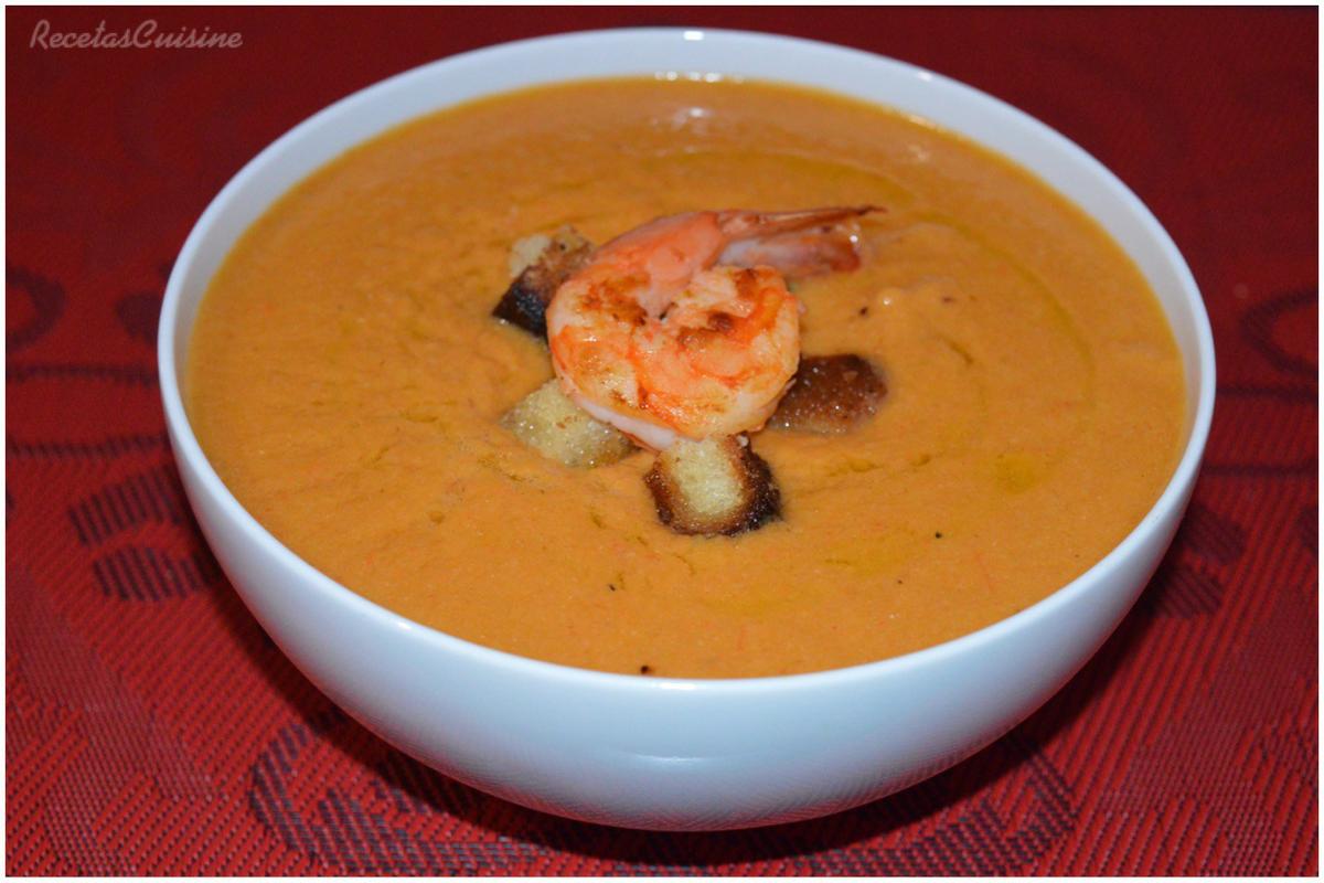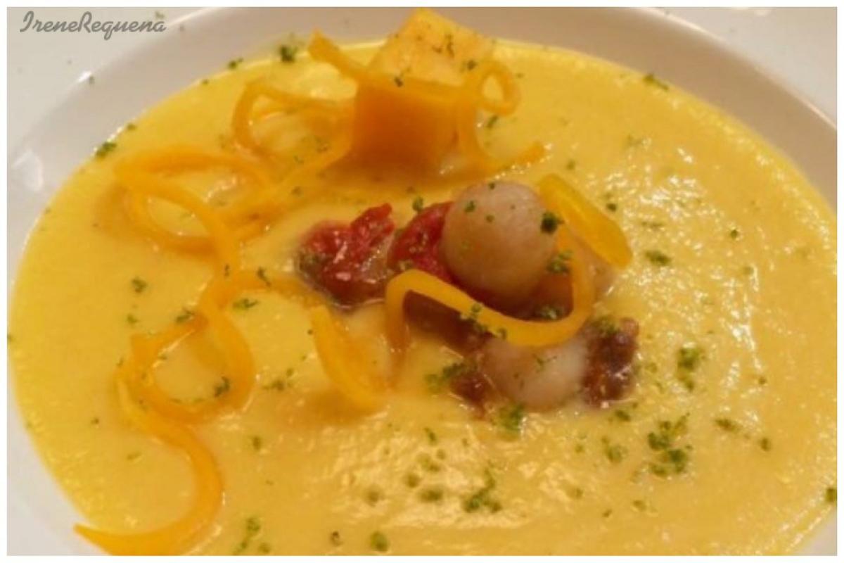Capuchino de Batata con Langostinos y Bacon Ahumado