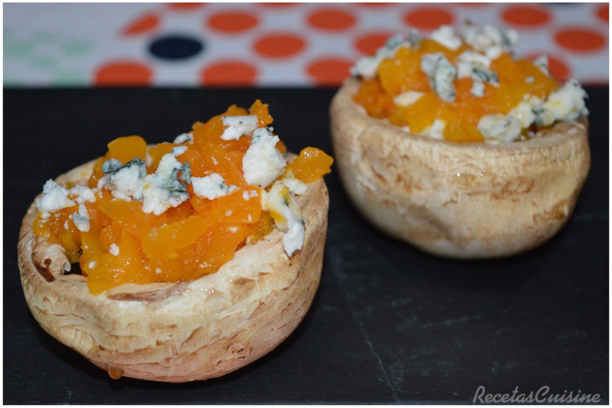 Champiñones Rellenos de Calabaza al Tomillo y Queso Azul