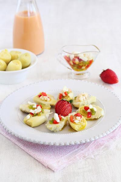 Alcachofas baby con vinagreta de crudités, fresas y huevo